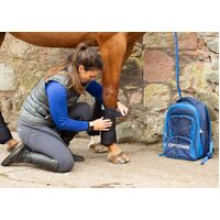 It is strongly advised to have the horse cross tied and monitor the horse throughout application of Cryochaps. The wrap can be damaged by teeth and if the horse tries to get them off by flexing their legs, this can lead to excessive pressure on the wrap, which can break the seals forcing the gel through the blue material.