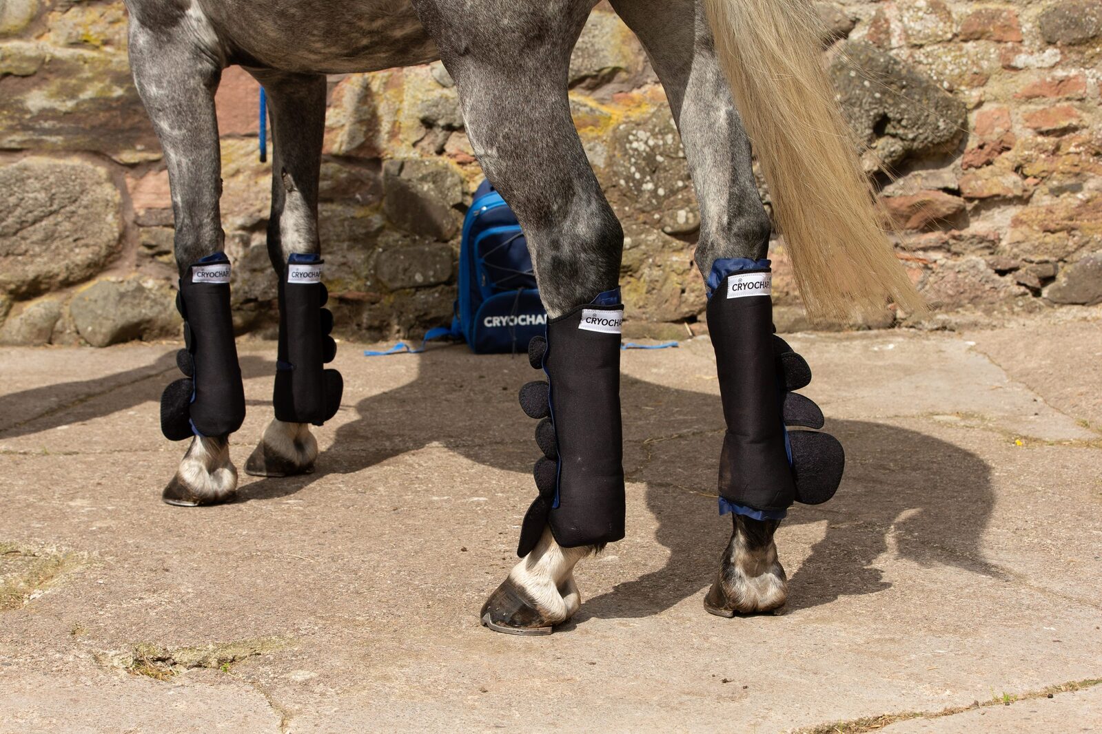 - Cooling- Cryochaps cooling boots for horses quickly cool the surface leg temperature to under 10 degrees. Low leg temperatures can be maintained up to 1hr after removal.
