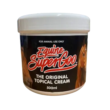 Equine SuperGoo Original Topical Cream is a versatile natural ointment designed to support healthy skin and fast recovery in horses and other animals. This signature formula combines an aqueous cream base with a concentrated blend of aloe vera gel, pure therapeutic essential oils (lemon, lavender and camphor) plus emu oil.