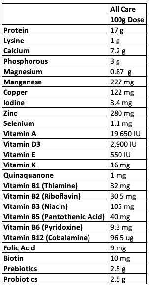 ALLCARE™ contains a mega blend of vitamins, minerals & yeast strains.