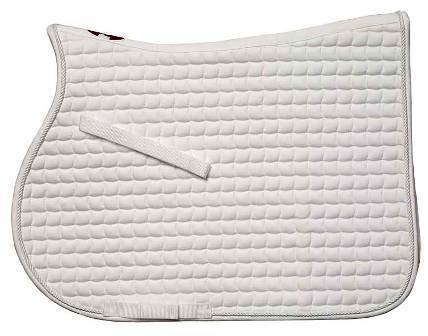 This quilted cotton dressage saddlecloth with white rope braid trim is elegantly formal.